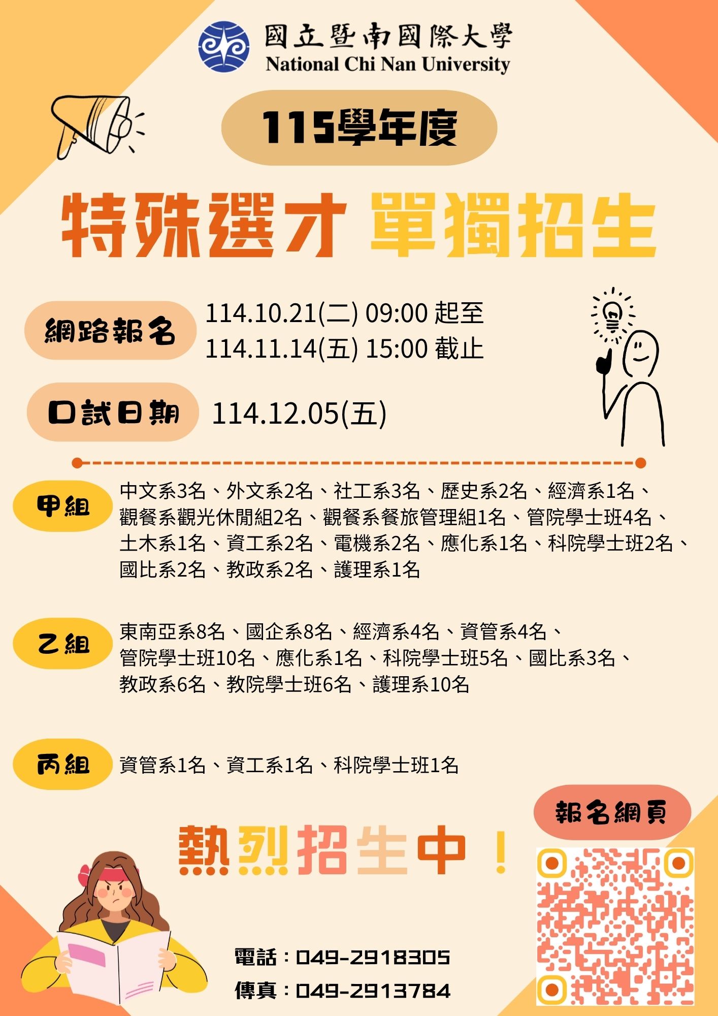 國立暨南國際大學115學年度特殊選才單獨招生訊息
